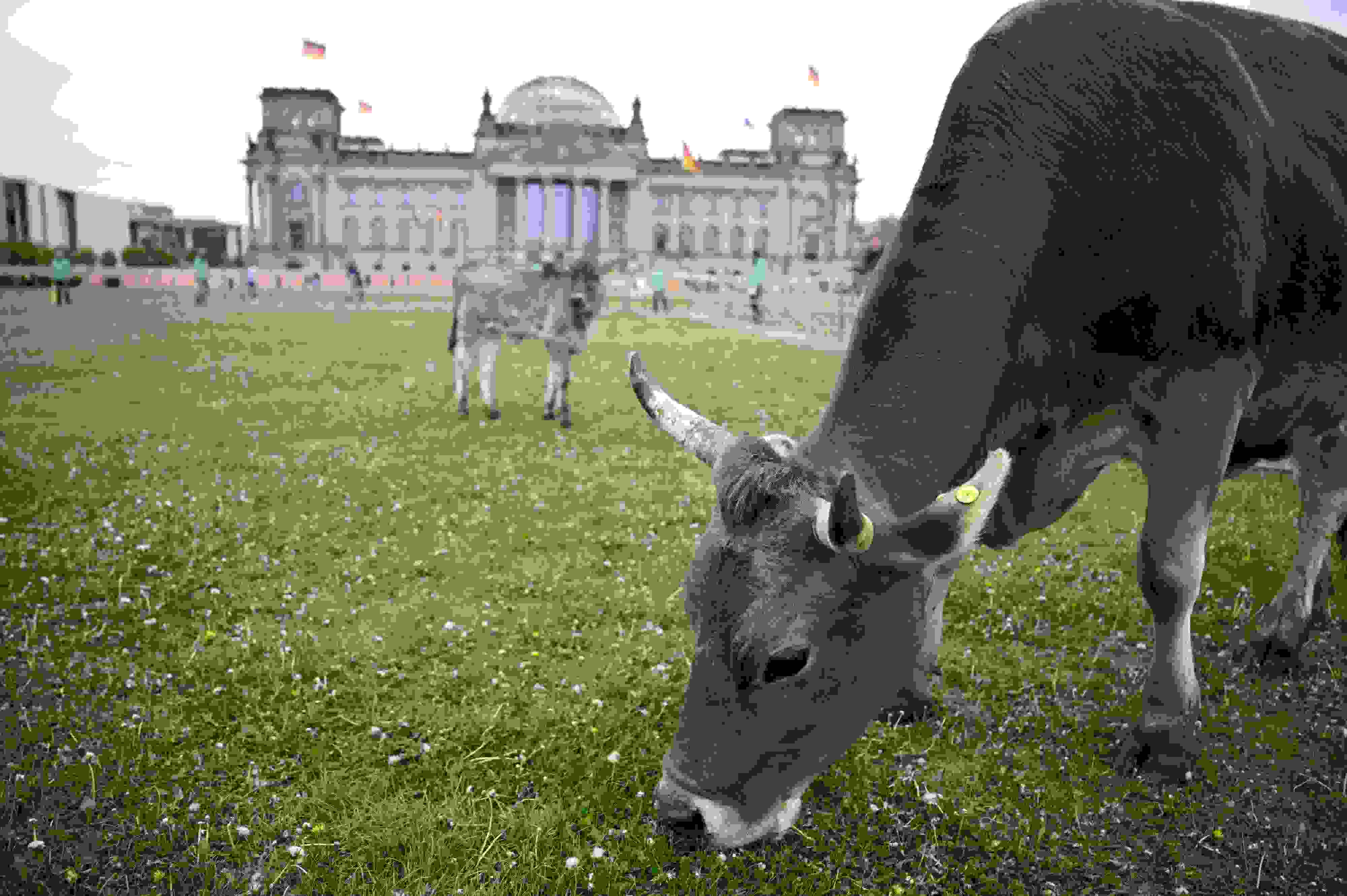 德國(guó):牛群國(guó)會(huì)大廈前吃草