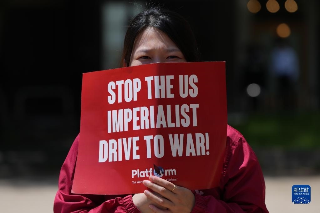 5月21日,民眾聚集在日本廣島袋町公園,抗議七國集團(tuán)峰會。