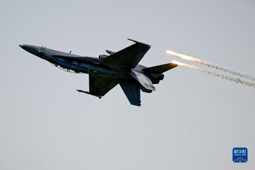 5月25日,在馬來西亞蘭卡威舉行的第16屆蘭卡威國際海事和航空展上,一架馬來西亞皇家空軍的F/A-18D戰(zhàn)機進行表演。