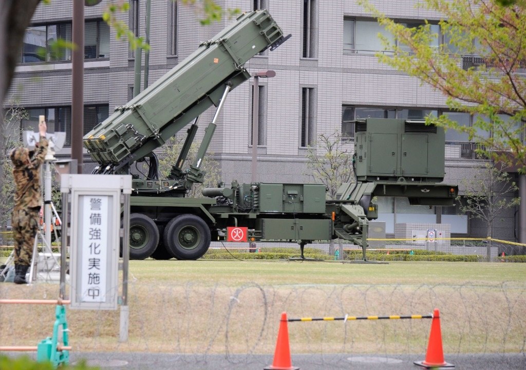 2013年4月9日,在日本東京的防衛(wèi)省總部,“愛國者3型”導(dǎo)彈發(fā)射裝置停放在運(yùn)動場內(nèi)。新華社發(fā)(關(guān)賢一郎攝)