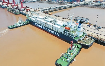 去年以來,浙江省玉環(huán)市持續(xù)加強(qiáng)對港口企業(yè)的引導(dǎo)力度,拓展大麥嶼港與東南亞國家、RCEP國家的合作。圖為一艘滿載6245噸新季獼猴桃的新西蘭貨輪停泊在大麥嶼港集裝箱碼頭,該航線是大麥嶼港于去年成功開通的RCEP國家水果進(jìn)口航線,實(shí)現(xiàn)了入境水果業(yè)務(wù)零的突破。段俊利攝(人民視覺)