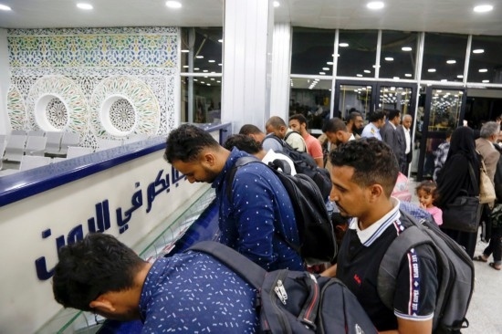 5月14日,從蘇丹撤離的也門公民抵達(dá)薩那國際機(jī)場。新華社發(fā)(穆罕默德·穆罕默德攝)