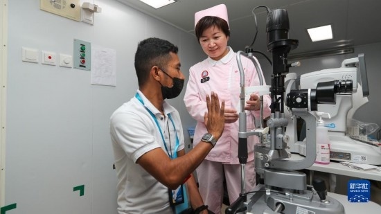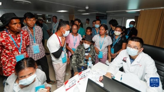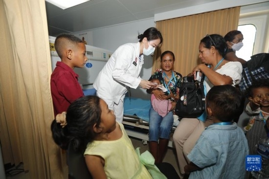 中國海軍“和平方舟”號醫(yī)院船訪問東帝汶并開展醫(yī)療服務期間,醫(yī)院船醫(yī)護人員為當?shù)孛癖娞峁┽t(yī)療服務(9月8日攝)。新華社發(fā)(黎宇 攝)