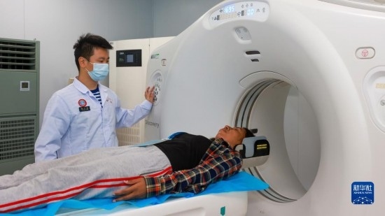中國海軍“和平方舟”號醫(yī)院船訪問東帝汶并開展醫(yī)療服務期間,醫(yī)院船醫(yī)護人員為當?shù)孛癖娺M行CT檢查(9月6日攝)。新華社發(fā)(陳云飛 攝)