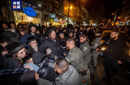△2023年1月,以色列極端正統(tǒng)猶太人在耶路撒冷抗議宗教社區(qū)售賣智能手機(jī),與警察發(fā)生沖突。