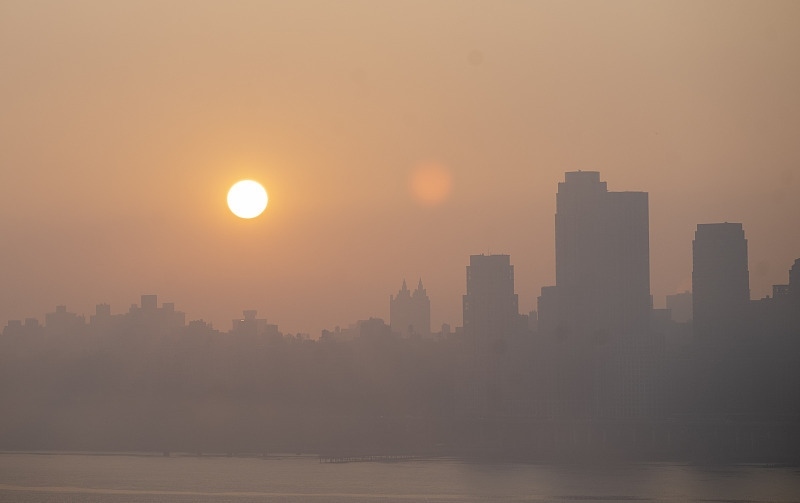 △當(dāng)?shù)貢r間7月5日,受加拿大森林大火影響,美國紐約處于煙霾之中。