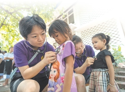 在中國民間組織國際交流促進會的協(xié)助下,“中國—老撾先天性心臟病聯(lián)合篩查和治療”醫(yī)療合作項目團隊6月中下旬在萬象、烏多姆賽省、瑯勃拉邦省等地,對近6000名3歲至18歲的幼兒園孩童和中小學生進行先心病免費篩查,并為部分患兒進行治療。近年來,中國和老撾、柬埔寨等國醫(yī)護工作者攜手護佑生命,守衛(wèi)健康,為當?shù)貎和钇鹆艘蛔靶闹畼颉??!案兄x中國醫(yī)生用先進的醫(yī)療技術,為老撾患者帶來了生命的希望?!眳⑴c活動的老撾衛(wèi)生部部長本豐由衷地說。