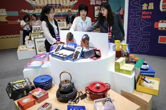 敦煌壁畫盲盒、幽幽鹿鳴小夜燈、三兔共悅彩繪果盤……6日,在文博會上的酒泉文創(chuàng)產(chǎn)品展臺,酒泉市文體廣電和旅游局工作人員王瑩說,“開館不到2小時就賣了近3000元,來購買文創(chuàng)的還有不少外國人。去年全年敦煌文創(chuàng)銷售額達4000多萬元。”