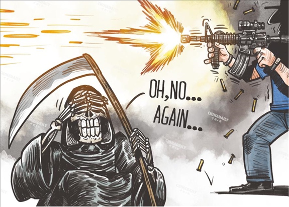 校園槍擊這一惡性事件漸成美國常態(tài)令人膽寒。(圖片來源:中國日報)