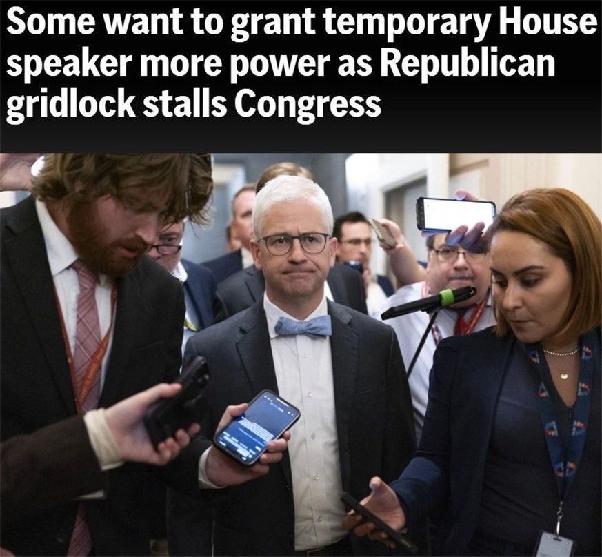 在此之前,為確保眾議院“正常履職”,有人提出當(dāng)務(wù)之急是擴(kuò)大麥克亨利的職權(quán)。不過,一些共和黨議員對此并不感興趣,認(rèn)為在預(yù)算和其他重大政策方面,為臨時(shí)議長擴(kuò)權(quán)并不是有效的做法。