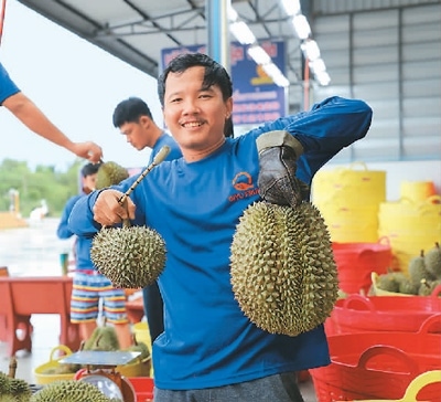 春蓬府位于泰國(guó)南部,距離曼谷400多公里,是泰國(guó)南部最大的榴蓮種植區(qū)。泰國(guó)榴蓮主要種植于東部和南部地區(qū),東部榴蓮上市時(shí)間較早,集中在4月至6月,而南部稍晚,于6月至9月成熟收獲。春蓬府農(nóng)業(yè)局局長(zhǎng)素班告訴記者,今年南部榴蓮總產(chǎn)量63萬(wàn)噸,其中春蓬府約33萬(wàn)噸。素班說(shuō),泰國(guó)榴蓮近80%銷(xiāo)往國(guó)際市場(chǎng),中國(guó)市場(chǎng)占總出口量90%以上。