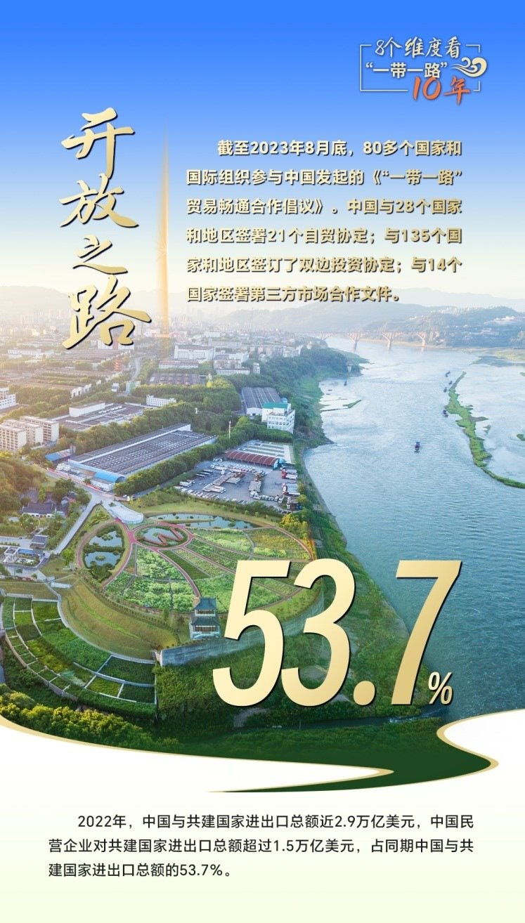 2023年是共建“一帶一路”倡議提出十周年,也是全面貫徹落實(shí)黨的二十大精神的開局之年。黨的二十大報(bào)告提出:“推動(dòng)共建‘一帶一路’高質(zhì)量發(fā)展。”從新起點(diǎn)再出發(fā),高質(zhì)量共建“一帶一路”,在和平之路、繁榮之路、開放之路、創(chuàng)新之路、文明之路、健康之路、綠色之路和數(shù)字之路上繼續(xù)扎實(shí)推進(jìn),攜手世界合作共贏、共同發(fā)展,擘畫攜手共建人類命運(yùn)共同體新藍(lán)圖。