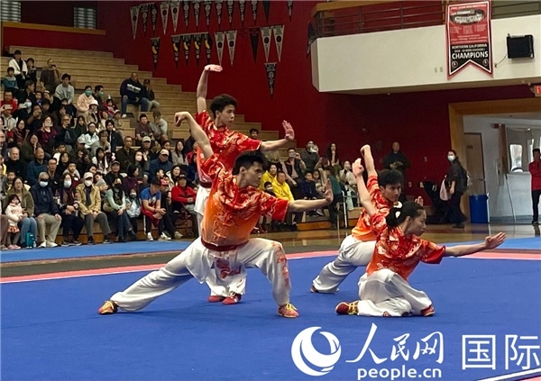 中國武術(shù)隊(duì)冠軍隊(duì)員在美國舊金山灣區(qū)交流表演
