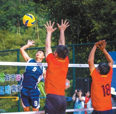 11月2日,中越民間體育賽事交流活動在云南河口瑤族自治縣舉行。圖為來自中越兩國的民間氣排球愛好者在這次跨國友誼賽中交流切磋。趙婧汁攝
