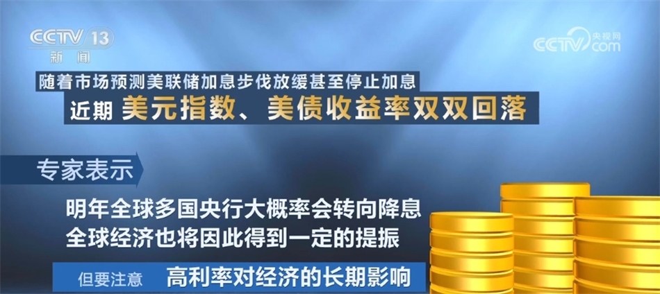 隨著市場預(yù)測美聯(lián)儲加息步伐放緩甚至停止加息,近期,美元指數(shù)、美債收益率雙雙回落,專家表示,明年全球多國央行大概率會(huì)轉(zhuǎn)向降息,全球經(jīng)濟(jì)也將因此得到一定的提振。但是,要注意的是,高利率對經(jīng)濟(jì)的長期影響。在國際貨幣基金組織(IMF)此前發(fā)布的《世界經(jīng)濟(jì)展望》中預(yù)計(jì),2024年全球經(jīng)濟(jì)增速為2.9%,較2023年有所下降。