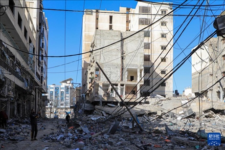 這是12月24日在加沙地帶南部城市拉法拍攝的以軍襲擊后的廢墟。新華社發(fā)(亞西爾·庫迪攝)