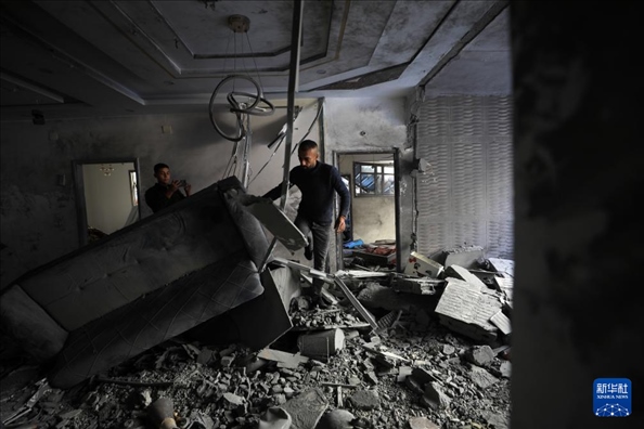 12月24日,在加沙地帶南部城市汗尤尼斯,人們查看以軍襲擊后的受損情況。新華社發(fā)(里澤克·阿卜杜勒賈瓦德攝)pagebreak