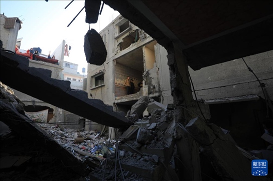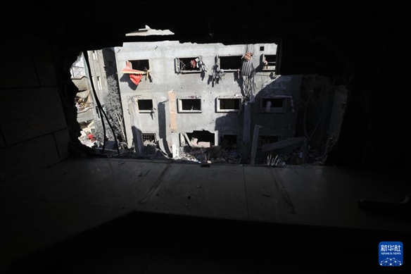 這是12月24日在加沙地帶南部城市汗尤尼斯拍攝的以軍襲擊后的受損建筑。新華社發(fā)(里澤克·阿卜杜勒賈瓦德攝)pagebreak