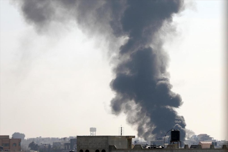 1月18日,加沙地帶南部城市汗尤尼斯遭以色列空襲后升起濃煙。新華社發(fā)(亞西爾·庫(kù)迪攝)