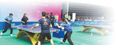 在中美建交45周年之際,北京市人民對(duì)外友好協(xié)會(huì)邀請(qǐng)美國弗吉尼亞大學(xué)代表團(tuán)訪問北京,并聯(lián)合北京市體育局共同舉辦以“重走乒乓路·一起向未來”為主題的中美青年乒乓球交流活動(dòng)。在清華大學(xué)舉行的這場(chǎng)乒乓球友誼賽,便是此次交流活動(dòng)的主要內(nèi)容之一。盡管是臨時(shí)組隊(duì),但乒乓球迅速化解了兩國大學(xué)生初次見面的拘謹(jǐn),讓他們很快熟絡(luò)起來,整場(chǎng)比賽也在輕松愉快的氛圍中順利結(jié)束。賽后,兩國大學(xué)生又聚在一起自拍留念,互留聯(lián)系方式。