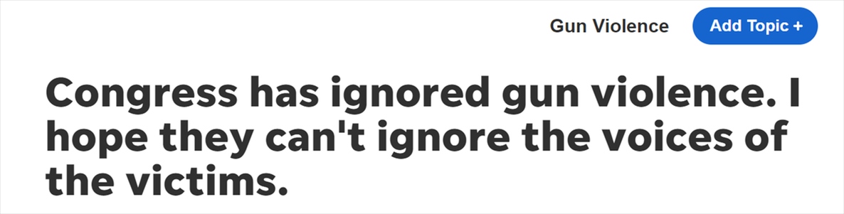 更為不幸的是,美國(guó)國(guó)會(huì)始終未能保護(hù)民眾免于遭受這種恐怖經(jīng)歷,他們對(duì)此選擇無視,無視美國(guó)的槍支暴力頑疾。