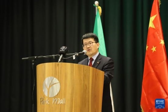 3月5日,在阿爾及利亞塞提夫,中國駐阿爾及利亞大使李健在論壇現(xiàn)場(chǎng)致辭。新華社記者 吳天雨 攝