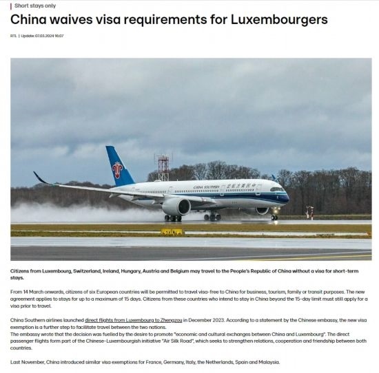 盧森堡輿論高度評(píng)價(jià)中方對(duì)盧實(shí)施免簽政策