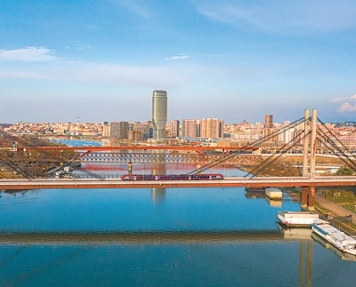 ?3月6日,一列旅客列車運(yùn)行在匈塞鐵路塞爾維亞境內(nèi)貝諾段的貝爾格萊德薩瓦河大橋上。任衛(wèi)云攝