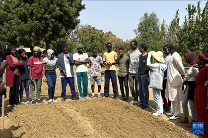2024年2月22日,在塞內(nèi)加爾達喀爾大學(xué)孔子學(xué)院農(nóng)業(yè)科技園內(nèi),中國農(nóng)技組專家為當(dāng)?shù)貙W(xué)生授課并現(xiàn)場指導(dǎo)實踐。新華社發(fā)(達喀爾大學(xué)孔子學(xué)院供圖)