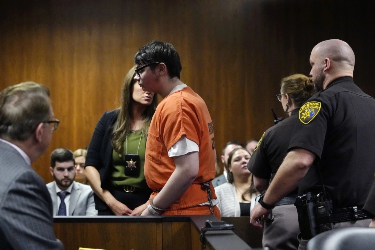 2021年11月30日,時(shí)年15歲的伊森·克倫布利在密歇根州底特律市附近的牛津鎮(zhèn)中學(xué)開(kāi)槍打死4名同學(xué),打傷6名同學(xué)和一名老師。他于2022年承認(rèn)4項(xiàng)一級(jí)謀殺罪名,被判處終身監(jiān)禁且不得假釋。