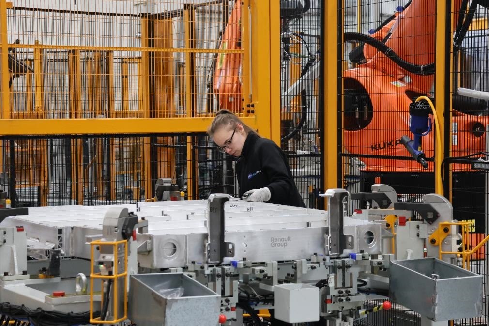 ?2月23日,在法國呂茨,中國敏實集團與法國雷諾集團成立的合資公司的員工在電池盒產線上工作。新華社記者張百慧攝