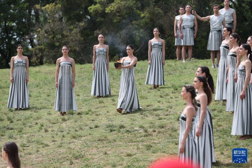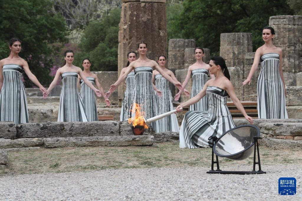 當(dāng)日,2024年巴黎奧運(yùn)會圣火火種采集儀式在希臘伯羅奔尼撒半島的古奧林匹亞遺址舉行。
