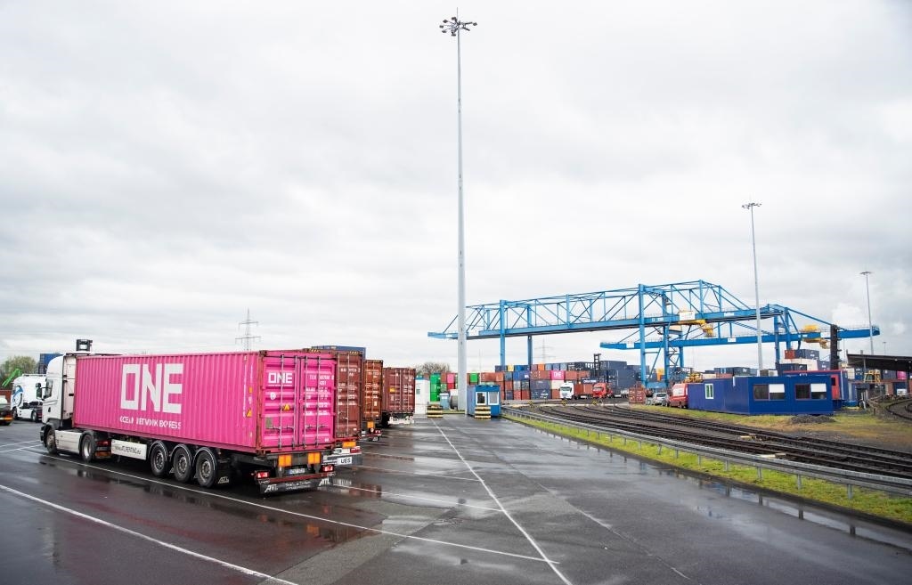 位于萊茵河西岸的杜伊斯堡港DIT貨運(yùn)場(chǎng)站,是中歐班列的主要操作場(chǎng)站。目前,每周約有60列中歐班列抵達(dá)這里。數(shù)臺(tái)幾十米高的起重機(jī)和各類裝卸設(shè)備緊密配合作業(yè),將卸下的集裝箱碼放整齊,形成一座座連綿不絕的“小山”。隨后,這些跋涉萬(wàn)里、種類豐富的中國(guó)貨品通過水路、鐵路或公路運(yùn)輸,送往周邊城市和其他歐洲國(guó)家。