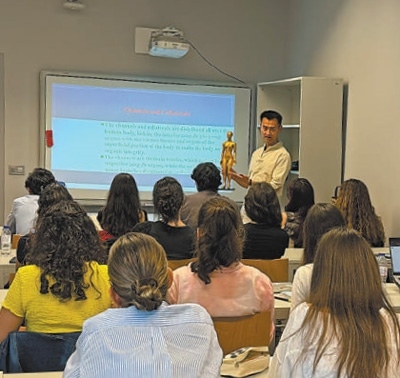 在葡萄牙科英布拉大學(xué)醫(yī)學(xué)院,教師葉曉為本科生教授《中醫(yī)藥概覽》。 張家鑫攝