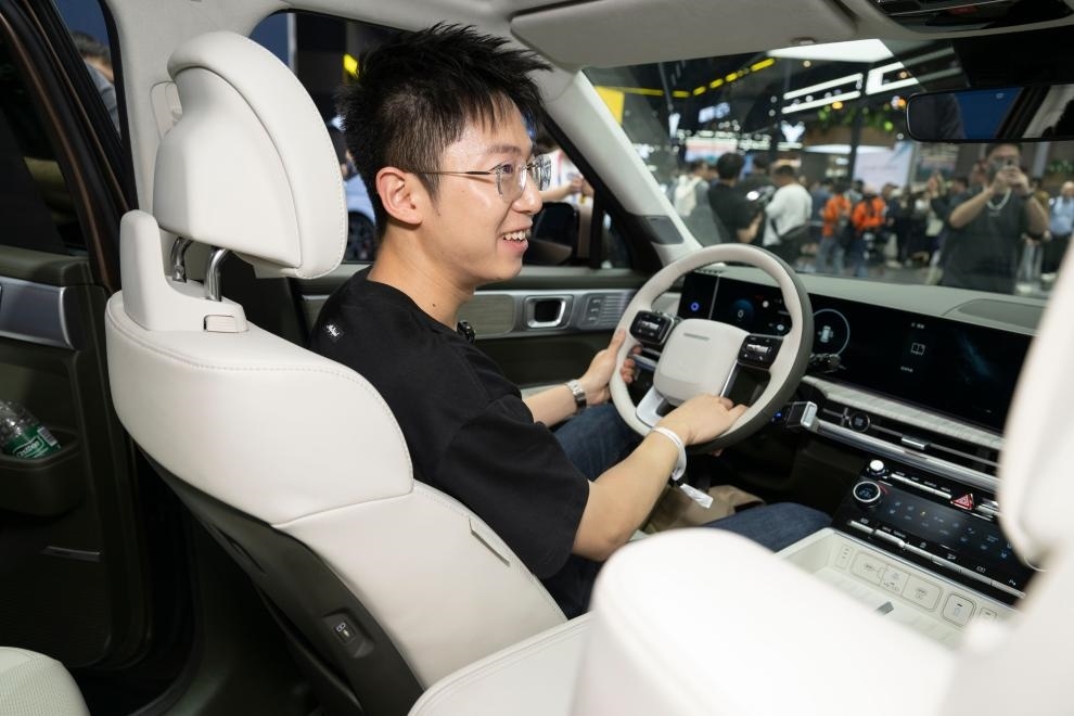 ?4月25日,在北京中國國際展覽中心順義館舉行的2024北京車展上,觀眾觀看北京現(xiàn)代全新勝達(dá)。新華社記者才揚(yáng)攝