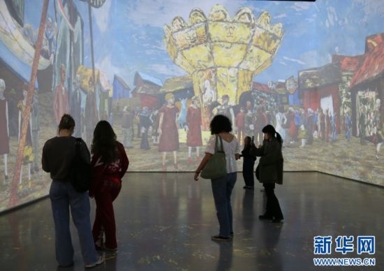 該博物館還致力于展示新技術(shù),在“糧倉實驗室”展廳,博物館將平面的油畫作品投影至地面和四面墻上,通過聲光電等形式,轉(zhuǎn)化為立體的多媒體作品,吸引了眾多參觀者觀摩。