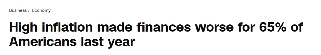 美聯(lián)儲近日發(fā)布的《2023年美國家庭經(jīng)濟(jì)狀況報(bào)告》(Economic Well-Being of US Households)顯示,65%的美國家庭的財(cái)務(wù)狀況因通脹而惡化,其中19%的人認(rèn)為財(cái)務(wù)狀況“嚴(yán)重惡化”。