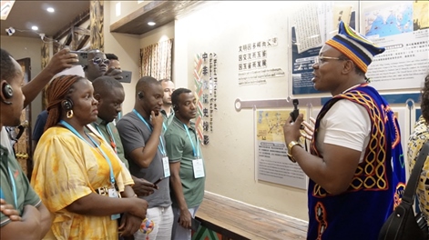 5月23日,非洲青年代表在浙江金華參觀浙江師范大學的中非交流博物館。新華社記者 于艾岑 攝
