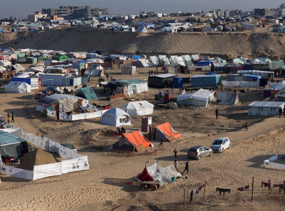 加沙地帶南部,一處流離失所者營(yíng)地。(資料圖)