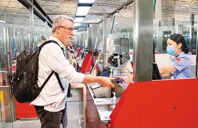 為了能讓外國(guó)旅客在入境第一站就體驗(yàn)到在中國(guó)旅游的便利,一系列免簽政策配套措施不斷創(chuàng)新完善——縮短候檢查驗(yàn)時(shí)間、自助填寫申報(bào)表、組建多語種志愿服務(wù)隊(duì)……各口岸邊檢部門傾力為出入境旅客提供優(yōu)質(zhì)、高效的通關(guān)服務(wù)。國(guó)際航線較多、外籍人員入境量較大的口岸均已開展口岸簽證業(yè)務(wù)。今年上半年,全國(guó)移民管理機(jī)構(gòu)簽發(fā)口岸簽證68.6萬證次,同比上升267.9%。