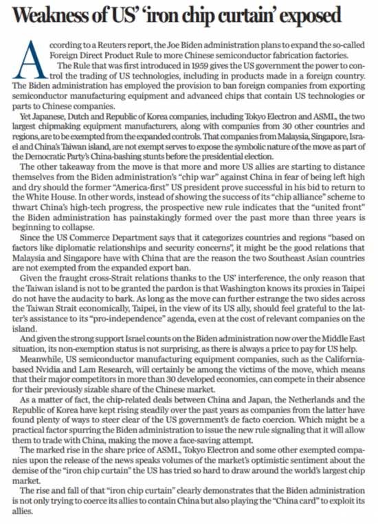 原標題:Weakness of US' 'iron chip curtain' exposed