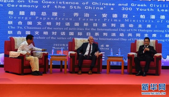 聯(lián)合國(guó)文明對(duì)話(huà)國(guó)際日系列活動(dòng)“中希文明交流互鑒對(duì)話(huà)”近日在四川省成都市“中華雷鋒志愿者小鎮(zhèn)”舉行。希臘前總理喬治·帕潘德里歐,聯(lián)合國(guó)藝術(shù)基金會(huì)主席、“2024中華雷鋒志愿者特別行動(dòng)計(jì)劃”負(fù)責(zé)人車(chē)夫出席并開(kāi)展對(duì)話(huà)。