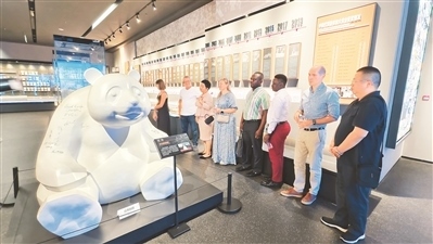 9月4日,在四川省成都市東安湖體育公園主體育場(chǎng),“2024走進(jìn)魅力成都”外國(guó)專家調(diào)研團(tuán)成員在參觀成都大運(yùn)會(huì)博物館的陳列。
