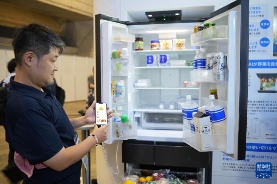這是10月17日在日本千葉縣舉行的日本高新技術(shù)博覽會(huì)上拍攝的,日本松下公司展區(qū)搭載AI攝像頭的冰箱。新華社記者 錢(qián)錚 攝