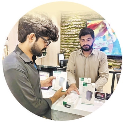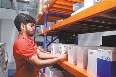 中國企業(yè)位于巴基斯坦的海外倉將中國制造的數(shù)碼產(chǎn)品等高附加值貨物快速配送至本地線下零售商網(wǎng)絡,顯著提升效率和靈活性。圖為海外倉的送貨員正在與當?shù)厣虘艚唤迂浳?。本報巴基斯坦分?賽義德·邁赫迪攝
