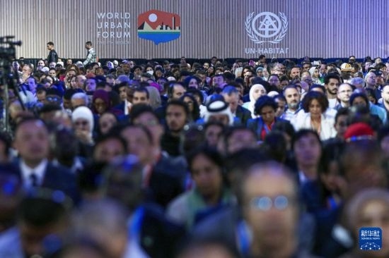 11月4日,人們?cè)诎<笆锥奸_羅參加第12屆世界城市論壇開幕式。新華社發(fā)(艾哈邁德·戈馬攝)