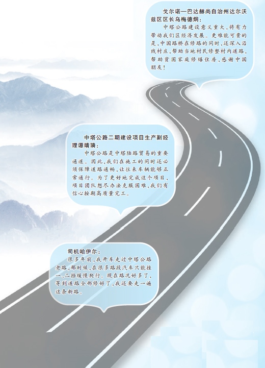自中塔公路二期建設(shè)項(xiàng)目啟動以來,中國路橋積極履行社會責(zé)任,幫助道路沿線村莊修整道路18公里,開展了一系列“小而美”民生工程?!案纳屏水?dāng)?shù)卮迕竦纳钏?。”李長偉說。