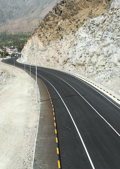 目前,中塔公路二期建設(shè)項(xiàng)目已完成全線60%左右的路面攤鋪工作,極大地改善了當(dāng)?shù)赝ㄐ袪顩r??ㄜ囁緳C(jī)穆罕默德經(jīng)常跑中塔公路,特別關(guān)注項(xiàng)目進(jìn)展。從前,這條路上山體滑坡是常事,車輛總被滯留途中,一耽誤就是好幾天?!艾F(xiàn)在路況有了很大改善,路上的貨車也越來越多了?!蹦潞蹦抡f。