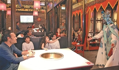 潘國(guó)余說(shuō),迪拜小龍坎火鍋店的位置在華人聚居區(qū),但現(xiàn)在40%的客人來(lái)自世界各地。這說(shuō)明只要把握好品質(zhì),中國(guó)餐飲品牌“走出去”有著巨大空間。“我們發(fā)現(xiàn),很多國(guó)際客人來(lái)這里,一是因?yàn)槌曰疱伳茏约赫瓶乜谖杜c火候,有儀式感,二是能更多體驗(yàn)中國(guó)文化?!睘榇?,小龍坎火鍋店特意安排了川劇變臉、甩面秀、古箏彈奏等表演(見(jiàn)圖③,本報(bào)記者管克江攝),還提供傳統(tǒng)服飾供客人試穿、拍照?!盎疱伒甑难b修是古色古香的川西風(fēng)格,包廂名字也具有蜀地文化特征,如青梅煮酒、三顧茅廬、桃園結(jié)義等。每當(dāng)有外國(guó)朋友問(wèn)起包廂名的含義,我們都會(huì)仔細(xì)解釋其歷史典故,做好美食的同時(shí)講好中國(guó)故事。”