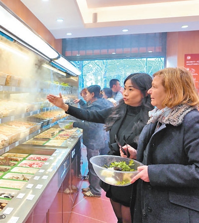 伊朗裔客人謝拉澤是第一次吃火鍋,“我不知道吃火鍋是什么樣子,來(lái)之前還擔(dān)心會(huì)不適應(yīng)。沒(méi)想到,一進(jìn)餐廳就被這里的裝修風(fēng)格和用餐氛圍感染了。這次是我們幾個(gè)生意伙伴一起聚餐。我特別喜歡大家圍坐在熱騰騰的火鍋旁,一邊聊天一邊涮火鍋的感覺(jué)。這里的調(diào)料和食材很豐富,大家各取所需。”